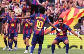 对于这场国家德比,巴萨靠着阿劳霍的一个头...